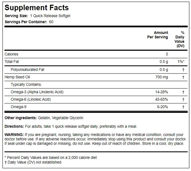 Piping Rock Hemp Seed Oil 700 mg Omega 3, 6, 9 - 60 softgels
