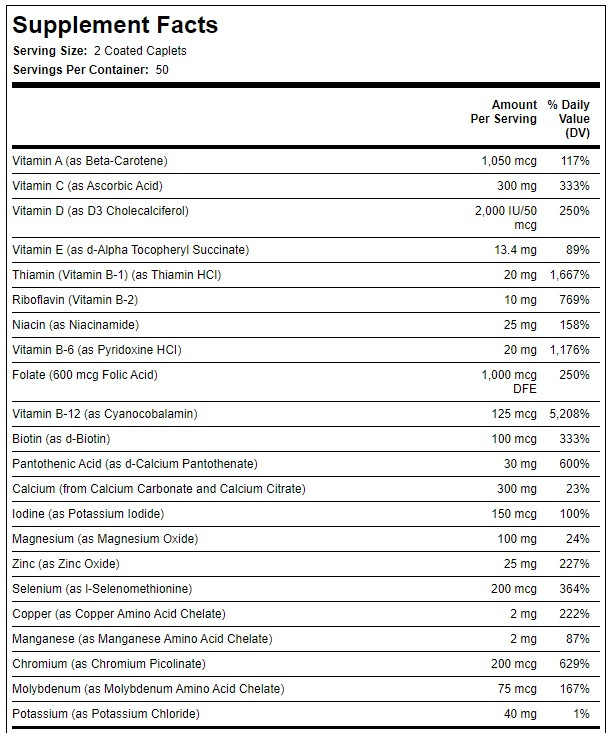 Створено спеціально для чоловіків старше 50 років. На відміну від інших мультивітамінів, Mega Multi for Men 50+ містить життєво важливі поживні речовини, які зазвичай не містяться в раціоні, такі як гінкго білоба і фосфатидилсерин.
