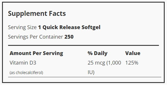 Nature's Truth D3 25 mcg (1000 IU) 250 softgels