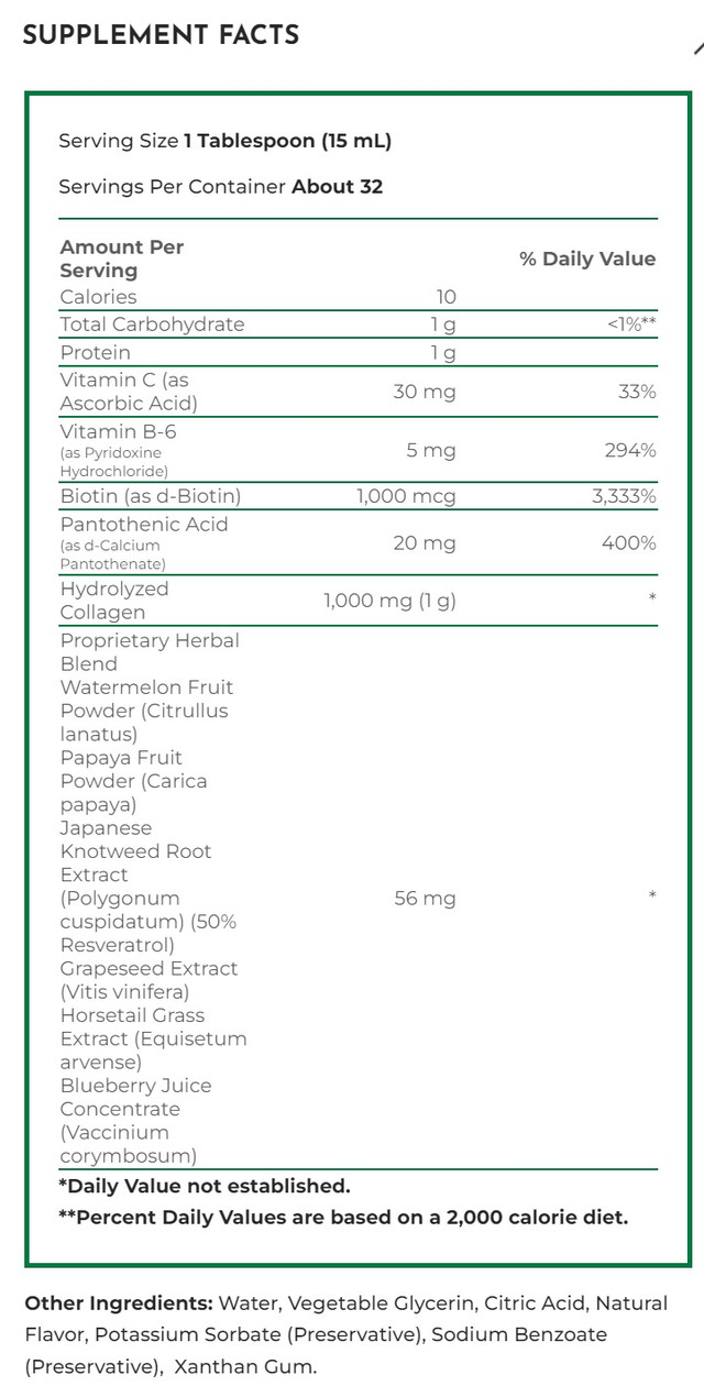 Наша смачна рідина з натуральним ягідним смаком містить 1000 мг гідролізованого колагену, 1000 мкг біотину та 30 мг вітаміну C на порцію, що робить її незамінною для будь-якої оздоровча або косметична процедура.